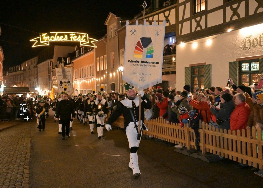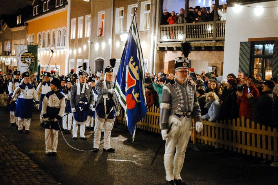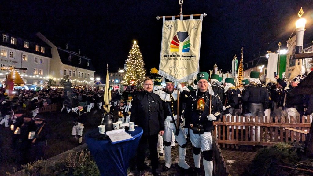 Traditionell findet in Zwönitz am Vorabend des 1. Adventes 2025 eine Bergparade statt. Dort erlebten wir den abendlichen Bergaufzug auf unserem Zwönitzer Marktplatz und Ihre Teilnahme hat tausende Besucher begeistert und allen ein unvergessliches Erlebnis beschert.